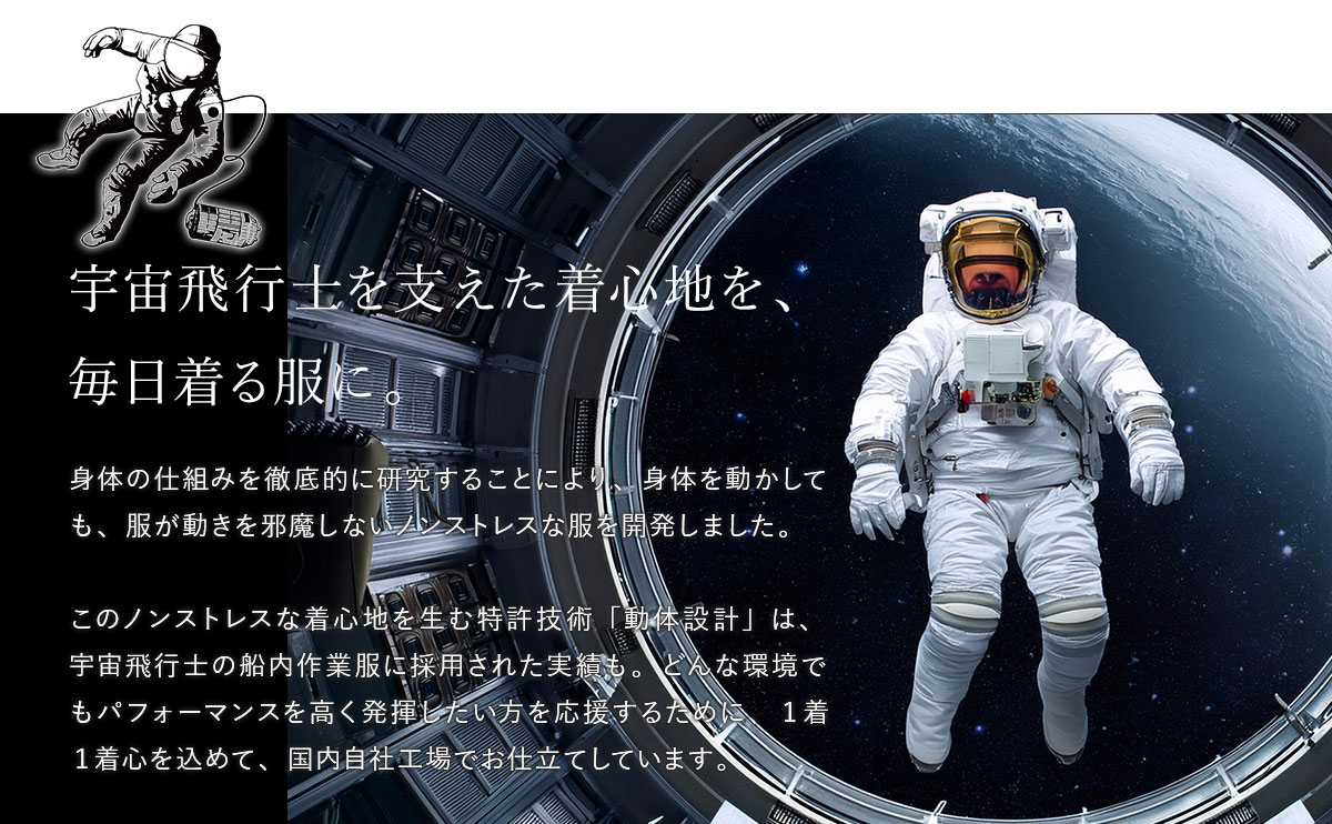 「宇宙飛行士」を支えた特許技術で、ノンストレスなワイシャツを実現しました。