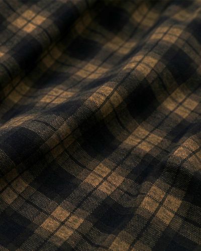 肌ざわりの良い綿に、ドライタッチな糸を編み込むことで、シワになりにくいフランネル生地にしています。 “フランネル生地”と言っても、かなり毛足の短い微起毛なので、ビジネスシーンでも着用できるすっきりした印象の生地です。色味を抑えているので、ビジネスカジュアルのスタイルでお仕事をされる方にもおすすめのネルシャツになっています。