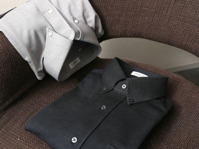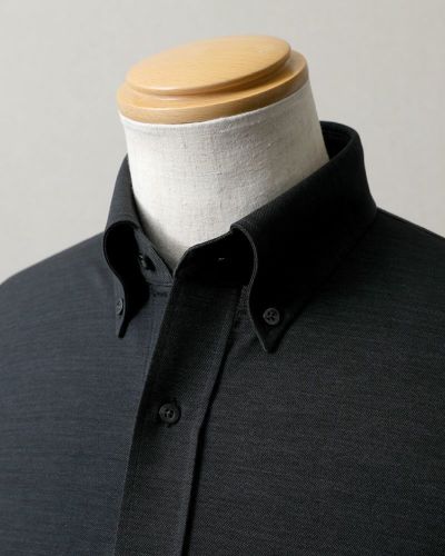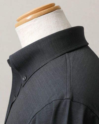 ハリコシが出るように編み上げた生地なので、布帛シャツのように見えますが、ニットシャツなので、ご自宅の洗濯機で洗ったら、そのまま干せば、アイロン掛けせずに着用いただけます(タンブラー乾燥は縮みの原因になりますので、お避けください)。着ていないときも、ノーアイロンシャツでノンストレスにお過ごしいただけます。