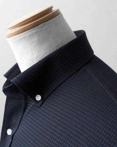 今回ご用意した千鳥柄のシャツは、〈ネイビー×ホワイト〉と〈ネイビー×ブラック〉の2色です。