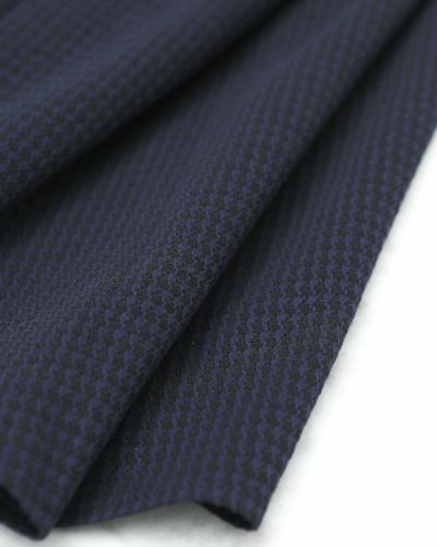 ネイビーとブラックの千鳥柄は、落ち着きのあるトーンの中に奥行きと陰影を感じさせる組み合わせです。どちらも深みのある色味同士でありながら、光の角度で現れるさりげないコントラスト。無地のようで、よく見ると柄が浮かび上がる——そんな“静かな個性”が、印象に深みを加えます。