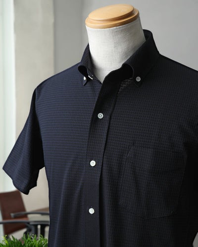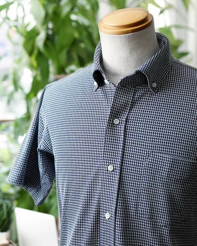 涼やかで、肌離れがよく、風が抜ける―。夏の定番素材『シアサッカー』生地で、ハイゲージニットの「千鳥柄半袖シャツ」をお仕立てしました。