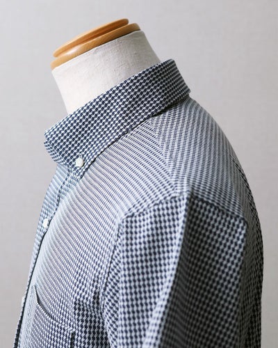 今回ご用意した千鳥柄のシャツは、〈ネイビー×ホワイト〉と〈ネイビー×ブラック〉の2色です。