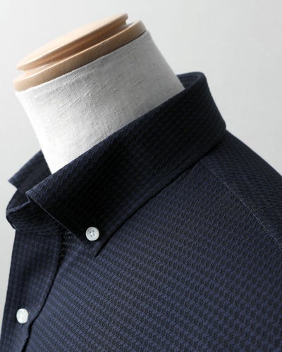 夏のシャツは、着心地だけでなく、見た目の印象で涼しさや爽やかさを表現することも大切です。素材の凹凸、柄の印象、生地の光沢―。それぞれが少しずつ作用し合って、手に取った人の輪郭をやわらかく、そして凛と整えてくれる。