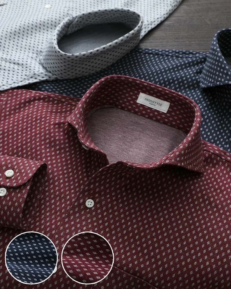 長袖 / ネルシャツ / 小紋 / カッタウェイ / 胸ポケットあり / ニットシャツ【最短1~最長3営業日出荷】