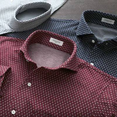ハリコシが出るように編み上げた生地なので、布帛シャツのように見えますが、ニットシャツなので、ご自宅の洗濯機で洗ったら、そのまま干せば、アイロン掛けせずに着用いただけます(タンブラー乾燥は縮みの原因になりますので、お避けください)。イージーケアで、出張先などでもシワを気にせず着用いただけます。