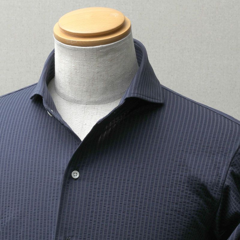 長袖 / シアサッカー / カッタウェイ / 胸ポケットなし / ニットシャツ【最短1~最長3営業日出荷】