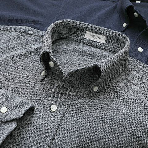 長袖 / 和紙鹿の子 / ボタンダウン / 胸ポケットあり / ニットシャツ【最短1~最長3営業日出荷】
