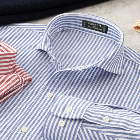 長袖 / ストライプ / カッタウェイ / 胸ポケットあり / ニットシャツ【最短1~最長3営業日出荷】