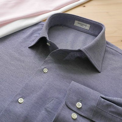 『シャリ感の美しい、ニットシャンブレーシャツ』、ご注文受付中です。