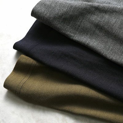 ハイゲージならではの光沢感、天竺素材のストレッチ性、天然ウールの保温性。見た目がシンプルだからこそ、ビジネスシーンに合うドレス感を演出できる素材を選びました。