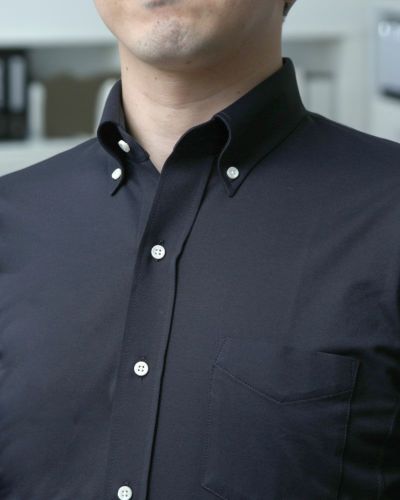 ハリコシが出るように編み上げた生地なので、布帛シャツのように見えますが、ニットシャツなので、ご自宅の洗濯機で洗ったら、そのまま干せば、アイロン掛けせずに着用いただけます(タンブラー乾燥は縮みの原因になりますので、お避けください)。イージーケアで、出張先などでもシワを気にせず着用いただけます。