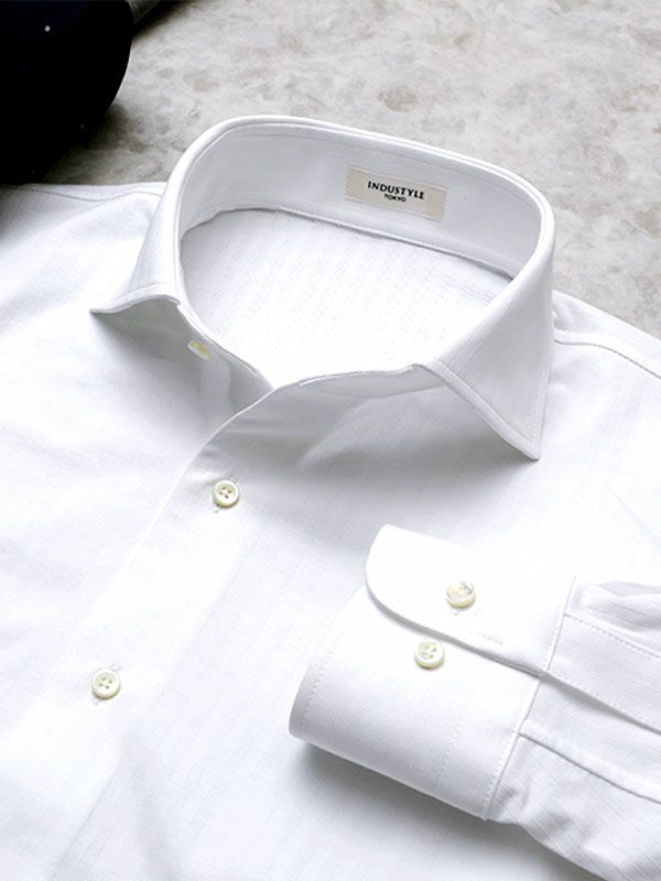INDUSTYLE TOKYOの創業当時から皆さまにご愛用いただいているモデルのひとつが、「ヘリンボーン」柄のドレスシャツです。無地ではなく、主張しすぎない柄なので、着回ししやすく、細かなアップデートをしながら、進化してきた定番モデルです。