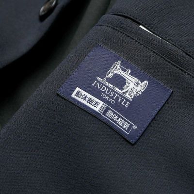 INDUSTYLEのロゴを刻印した、オリジナルのボタンです。フロントは2ボタン、袖は3つボタンのデザインにしています。
