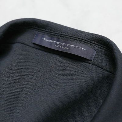 そんなジャケットをお仕立てするために欠かせなかったのが、特許技術『動体設計』、そして世界三大ウールと称される『尾州ウール』。見た目にはニット生地だと分からないほどハリツヤあるニット生地でお仕立てしているので、シワになりにくいイージーケアの2ボタンジャケットになっています。