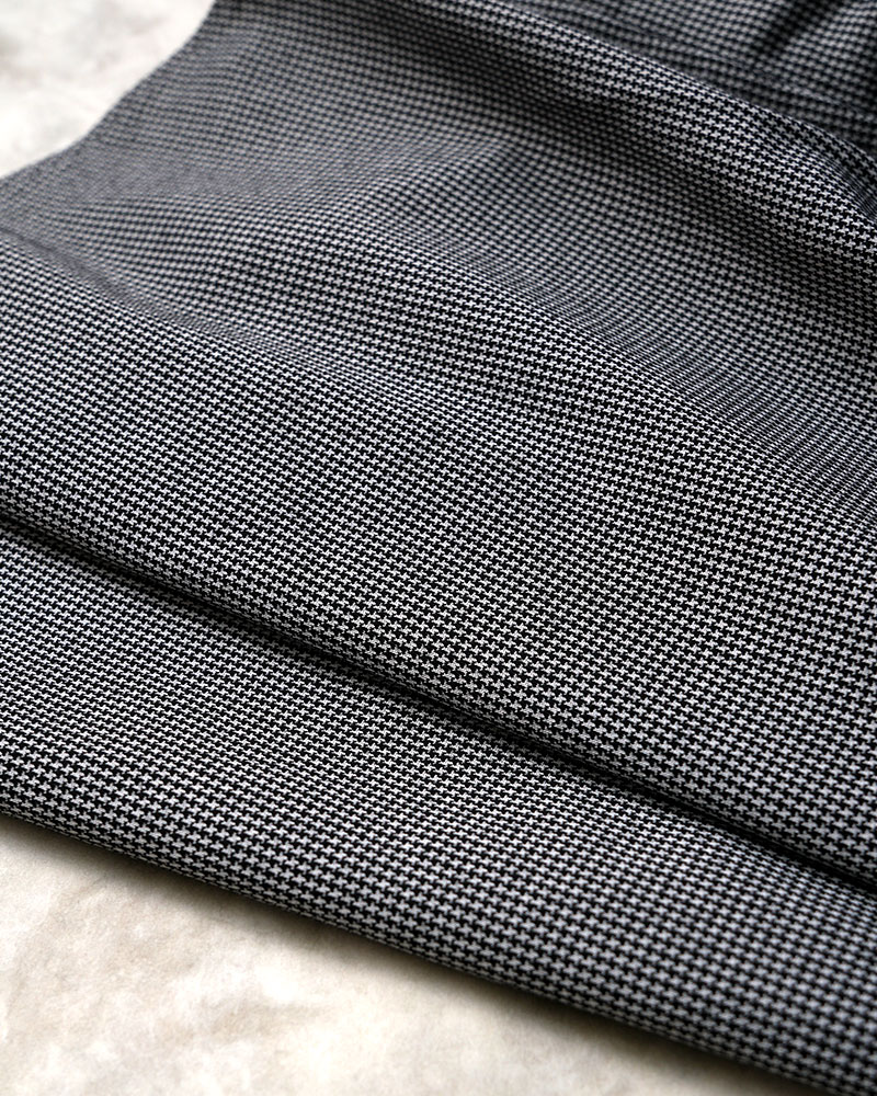 クラシックで細かな千鳥柄を採用することで、カジュアルにもビジネスシーンにも溶け込むようにしました。無地に近い感覚でコーディネートができるので、他のアイテムとコーディネートしやすい柄です。