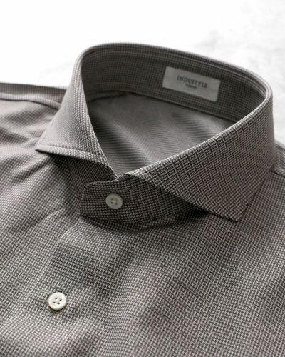 INDUSTYLE TOKYO(インダスタイルトウキョウ) 長袖 / 体感温度湿度調整作用 / 37.5テクノロジー / 千鳥格子 / カッタウェイ / 胸ポケットあり / ニットシャツ【最短1~最長3営業日出荷】