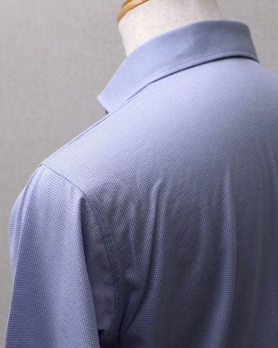 ハリコシが出るように編み上げた生地なので、布帛シャツのように見えますが、ニットシャツなので、ご自宅の洗濯機で洗ったら、そのまま干せば、アイロン掛けせずに着用いただけます(タンブラー乾燥は縮みの原因になりますので、お避けください)。着ていないときも、ノーアイロンシャツでノンストレスにお過ごしいただけます。