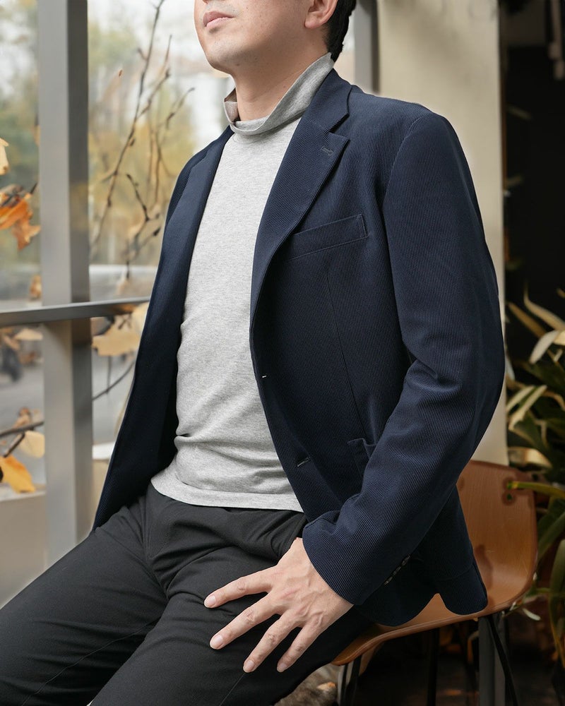 コーデュロイ特有の立体的な畝(うね)と、そこから生まれる美しい陰影を丁寧に再現しました。カジュアルに寄りすぎることなく、ジャケットとしてきちんと成立する、落ち着きのある上品な佇まいが特長です。