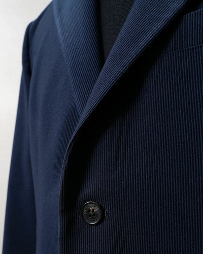 ネイビーのコーデュロイジャケットは、素材の温もりと色の端正さを併せ持つ一着です。畝が生む柔らかな陰影が、深みのあるネイビーに表情を与え、羽織るだけでワンランク深い装いに。