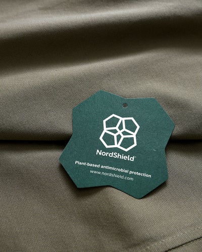 「NordShield(ノードシールド)」は、針葉樹の端材から、必要成分を抽出してつくられる、天然由来の抗菌成分。細菌の増殖を抑え、不快なニオイを防ぐ特殊な加工です。