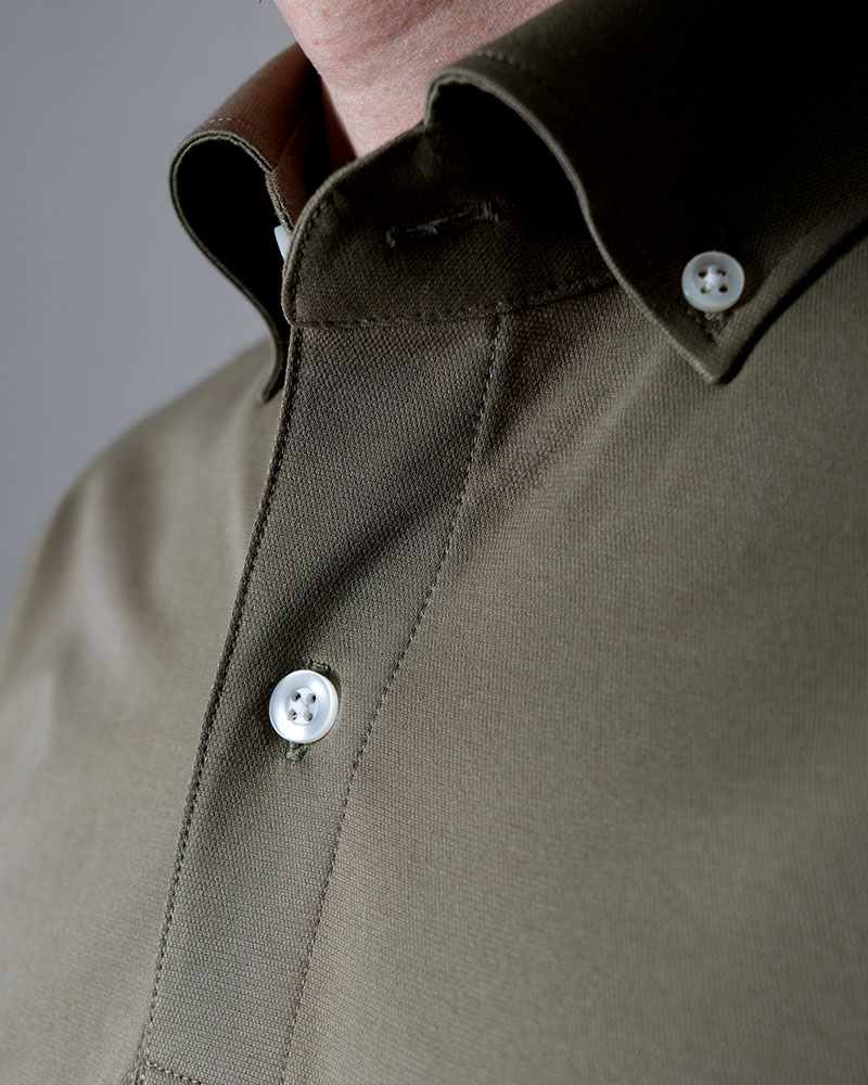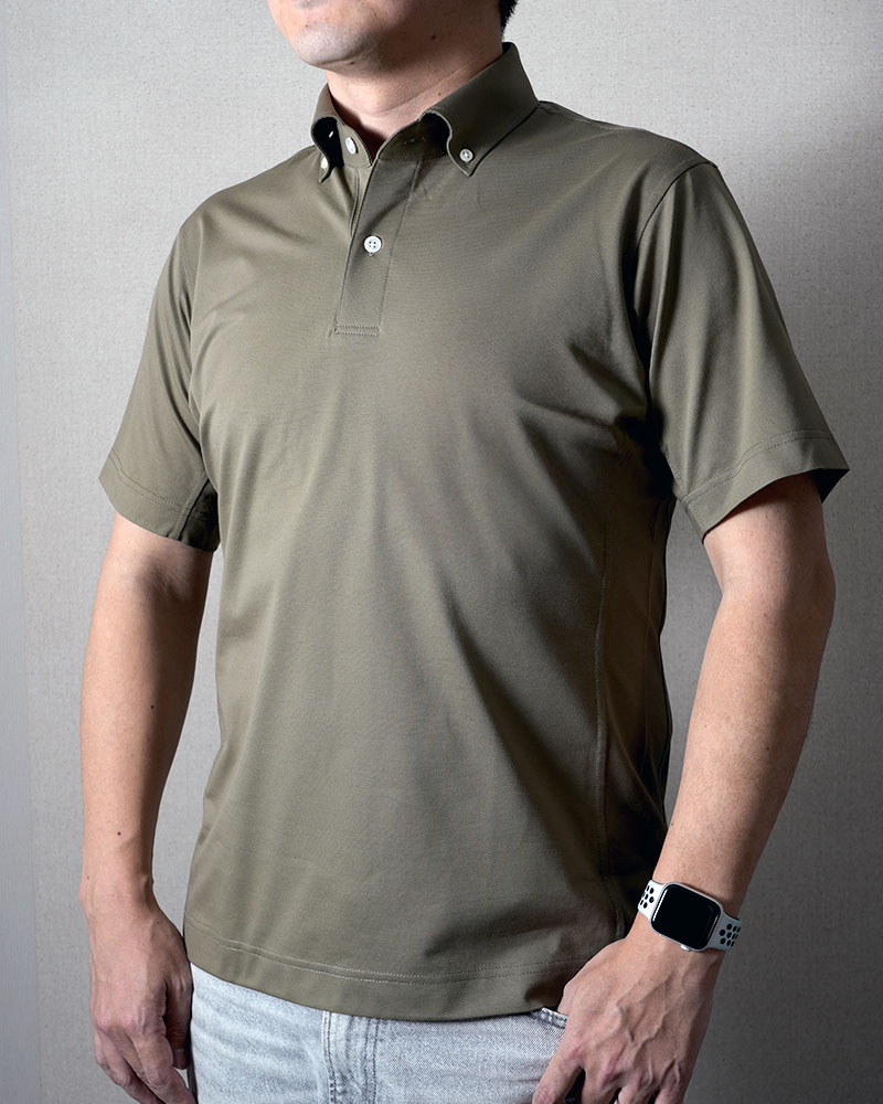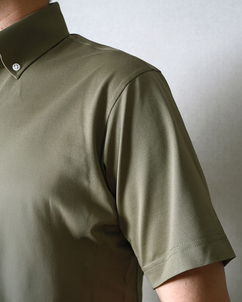 そこで、半袖プルオーバーの襟を「台襟付き」にすることで、ビジネスシーンに相応しいシャツにしました。