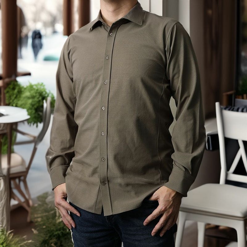 天然素材「ウール」と高機能素材「SOLOTEX」の良い所を引き出した生地で、シンプルな長袖シャツをお仕立てしました。