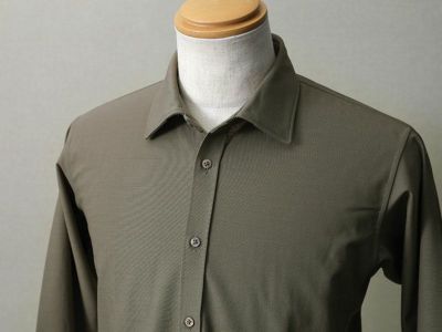 ハリコシが出るように編み上げた生地なので、布帛シャツのように見えますが、ニットシャツなので、ご自宅の洗濯機で洗ったら、そのまま干せば、アイロン掛けせずに着用いただけます(タンブラー乾燥は縮みの原因になりますので、お避けください)。着ていないときも、ノーアイロンシャツでノンストレスにお過ごしいただけます。