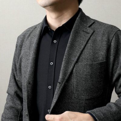 胸ポケットを付けず、前立ての幅を少し細めにすることで、ウール&SOLOTEXのドレス感を引き立てるような、すっきりした印象に。
