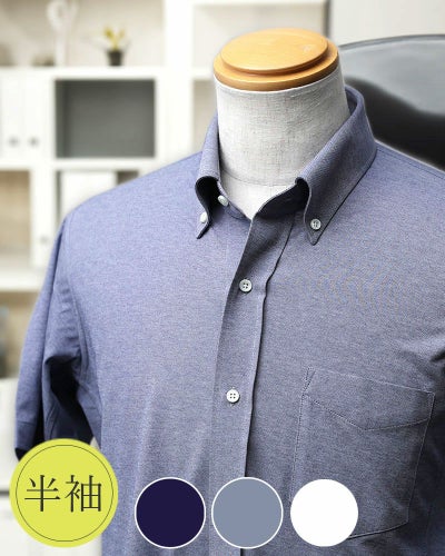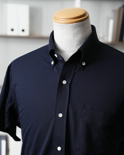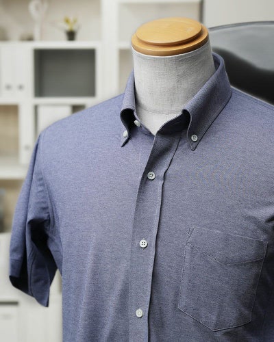シャリ感の美しい「ロイヤルシャンブレー」調のニット生地で、ビジネススタイルに相応しい半袖シャツをお仕立てしました。