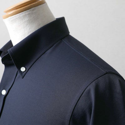 素材に選んだのは、シャリ感とさりげない光沢が美しい「ロイヤルシャンブレー」のニット生地。汗ばむ時季でも肌にまとわりつかず、さらりとした着心地が続きます。ビジネスシーンにも映える、品のある表情も大切にしました。