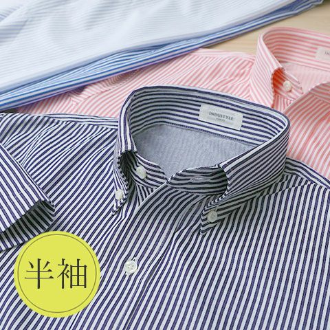 半袖 / ロンドンストライプ / ボタンダウン / 胸ポケットあり / ニットシャツ【最短1~最長3営業日出荷】