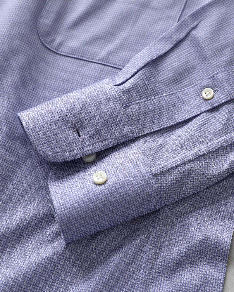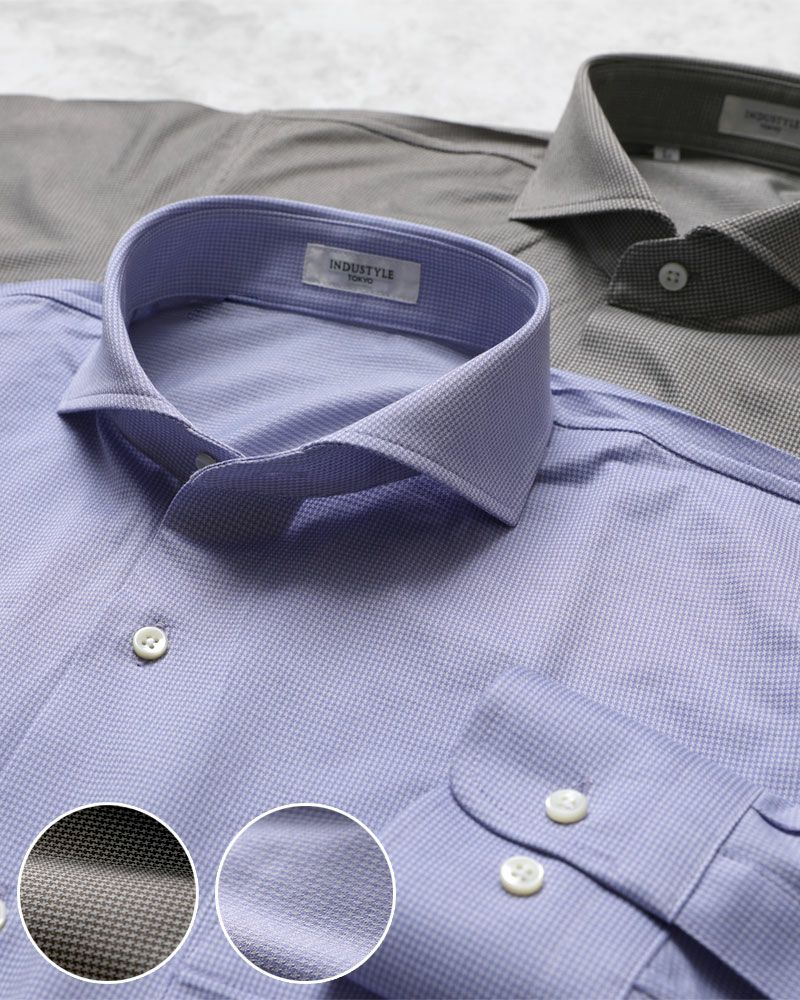 当店のワイシャツは、すべてビジネスシーンに対応した見た目と機能性を兼ね備えたニットシャツです。ニットシャツは伸縮性に優れているので動きやすく、さらに特許技術「動体設計」により、ニットシャツ本来のノンストレスな着心地を最大限に引き出しています。また、ニットシャツはシワになりにくいので、洗濯して自然乾燥すれば、アイロンがけせずに着用いただけます。1956年創業のニットウェア専業ファクトリー丸和繊維工業の自社国内工場で1着1着心を込めて、お仕立てしています。