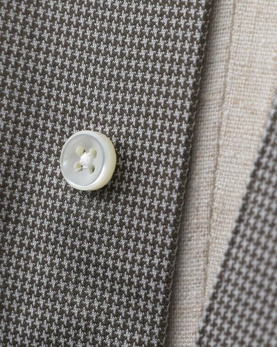 前立てのデザインは、「カッタウェイ」の襟型との相性が良い『フレンチフロント(裏前たて)』にしています。スタイリッシュですっきりした印象になるので、細やかな千鳥柄との相性も抜群です。