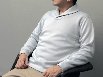 リラックスした着心地のために欠かせないのは、座っている時やごろんと寝転がった時、ソファやベンチに座っている時にも身体の姿勢やちょっとした動きを妨げない「動体設計」。定番アイテムのドレスシャツと同じ裁断ではなく、このウェアのために動体設計理論に基づいて、裁断縫製から考え直して完成しました。