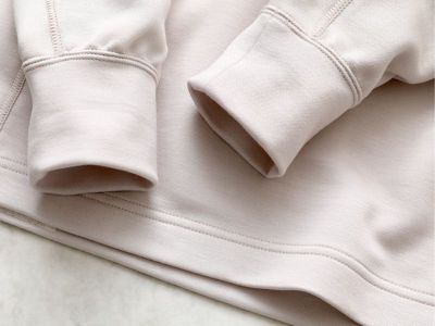 やわらかくふんわり編み上げた生地にシルケット加工を施すことで、ちょっとした外出にも対応できるような光沢感をプラスしました。