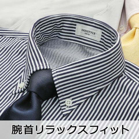 長袖 / ロンドンストライプ / ボタンダウン / 胸ポケットあり / ニットシャツ【最短1~最長3営業日出荷】【腕首リラックスフィット】