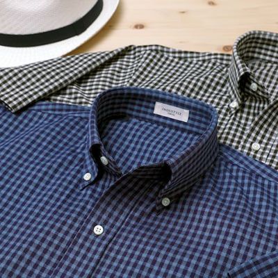半袖 / ギンガムチェック / ボタンダウン / 胸ポケットあり / ニットシャツ【最短1~最長3営業日出荷】