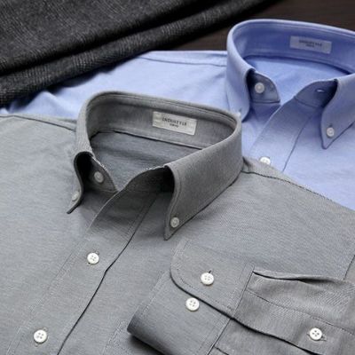 長袖 / ヘアラインストライプ / ボタンダウン / 胸ポケットあり / ニットシャツ【最短1~最長3営業日出荷】