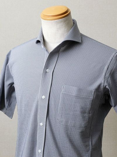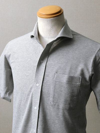 夏の人気素材「シアサッカー」で、半袖シャツをお仕立てしました。シアサッカー生地は、細かな凹凸があるので、肌にベタつかず、梅雨時期も本格的に暑い夏も涼しく過ごせる、夏にぴったりの素材です。