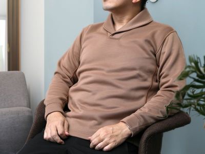 リラックスした着心地のために欠かせないのは、座っている時やごろんと寝転がった時、ソファやベンチに座っている時にも身体の姿勢やちょっとした動きを妨げない「動体設計」。定番アイテムのドレスシャツと同じ裁断ではなく、このウェアのために動体設計理論に基づいて、裁断縫製から考え直して完成しました。