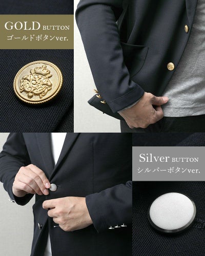 ジャケットの本水牛ボタンを「ゴールド」ボタンか「シルバー」ボタンに変更できます