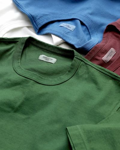 今回、「TOKYO KNIT × INDSUTYLE TOKYO」プロジェクトとして、凱風快晴の美意識にインスピレーションを受けて「赤富士の赤」「うろこ雲が浮かぶ空の青」「裾野に広がる樹海の緑」を、オーガニックコットンTeeに映しとりました。