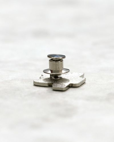 ジャケットのラペルに、さりげなく身につけるだけで、装いにほんの少しの温かみを。ミシンモチーフは七宝のような艷やかな質感に仕上げ、シルバーの部分はあえて金属感を残しているので、さりげないコントラストをお楽しみいただければと思っております。