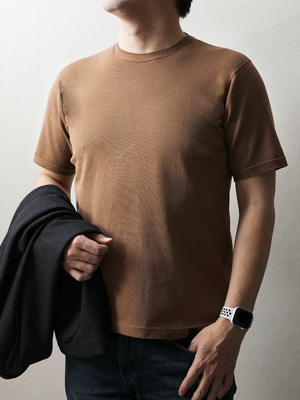 当店のワイシャツは、すべてビジネスシーンに対応した見た目と機能性を兼ね備えたニットシャツです。ニットシャツは伸縮性に優れているので動きやすく、さらに特許技術「動体設計」により、ニットシャツ本来のノンストレスな着心地を最大限に引き出しています。また、ニットシャツはシワになりにくいので、洗濯して自然乾燥すれば、アイロンがけせずに着用いただけます。1956年創業のニットウェア専業ファクトリー丸和繊維工業の自社国内工場で1着1着心を込めて、お仕立てしています。
