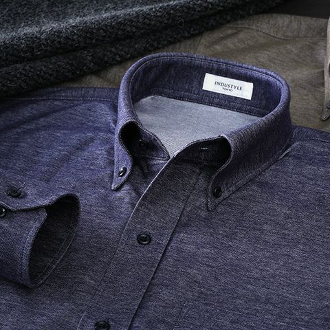 長袖 / デニム調フランネル / ボタンダウン / 胸ポケットあり / ニットシャツ【最短1~最長3営業日出荷】