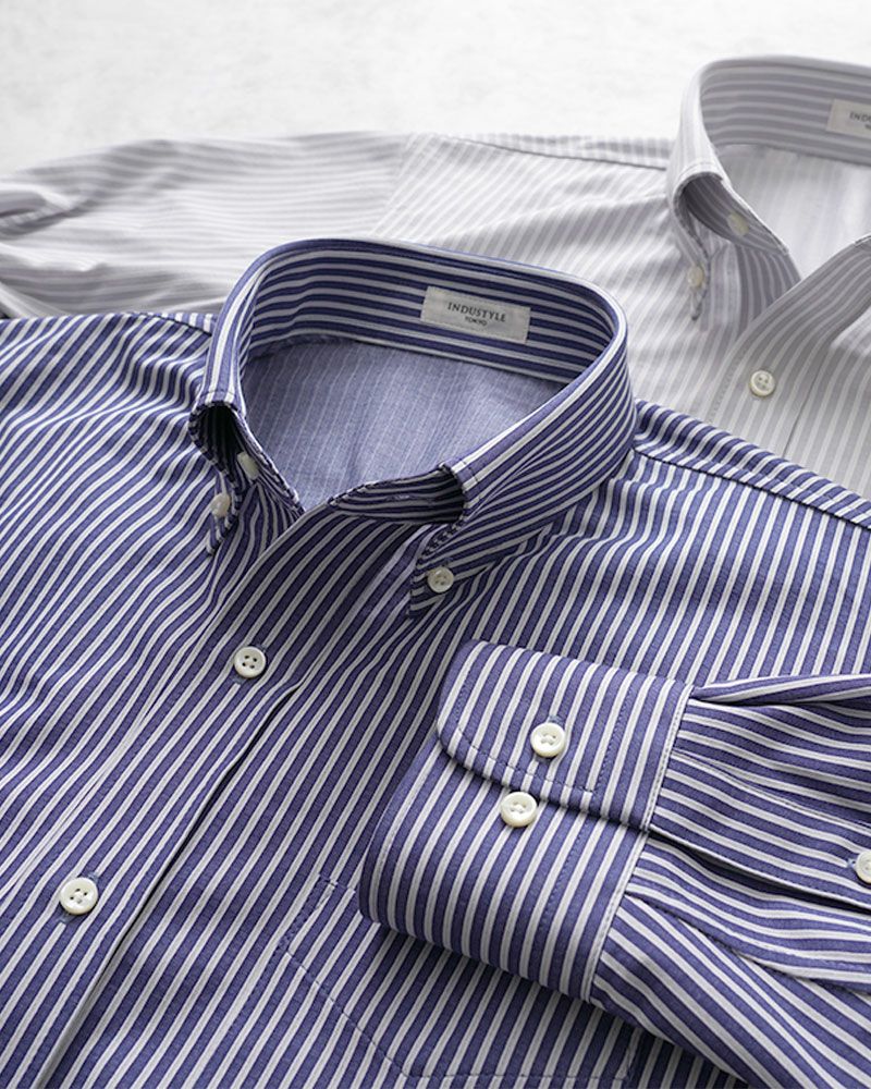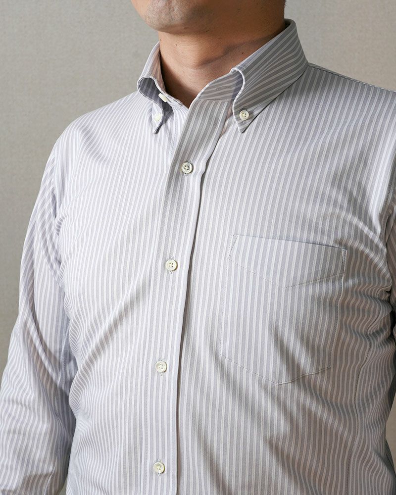 長袖 / ヘアラインストライプ / ボタンダウン / 胸ポケットあり / ニットシャツ【最短1~最長3営業日出荷】