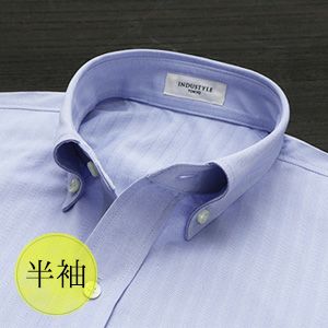 【INDUSTYLE TOKYO】ヘリンボーン 半袖 [襟型:ボタンダウン / 胸ポケット:あり]【キングフィット】 【ご注文から1~3営業日以内出荷】