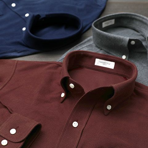 【INDUSTYLE TOKYO】生地メーカーさんと試作を繰り返して完成した綿100%フランネルニットシャツ 長袖 [襟型:ボタンダウン / 胸ポケット:あり]【キングフィット】