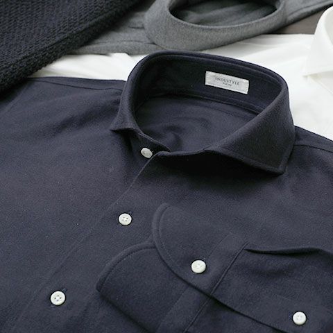 【INDUSTYLE TOKYO】綿100%フランネルニットシャツ 長袖 [襟型:カッタウェイ / 胸ポケット:なし]【キングフィット】